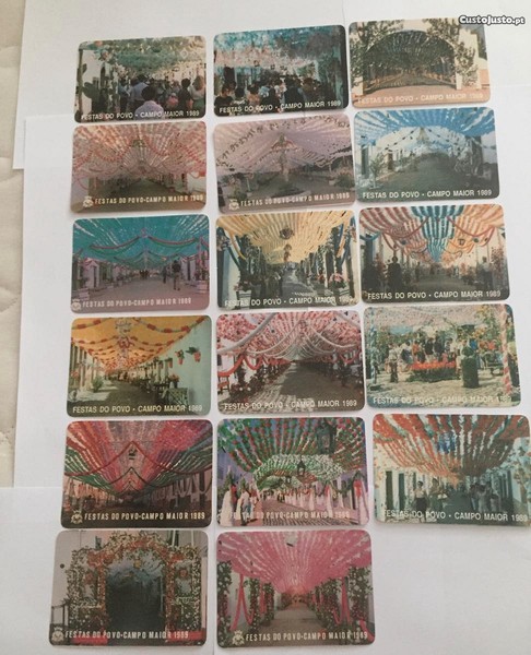 17 Calendários de bolso, todos diferentes, relativos á da Festa do Povo de Campo Maior, do ano de 1989. Não aceito propostas de valor inferior ao indicado. Acresce portes de envio. Só vendo o conjunto.