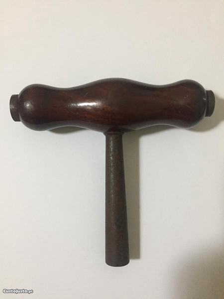 Chave antiga com pega em madeira para dar corda a relógio. Comprimento da pega em madeira - 10cm. Altura do ferro - 7cm. Não aceito propostas de valor inferior ao indicado. Acresce portes de envio.