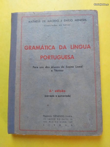 Esta Gramática é uma preciosidade e destinava-se ao uso de alunos do Ensino Liceal e Técnico.
