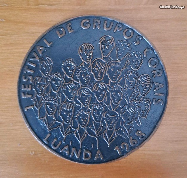 Medalha comemorativa antiga do "1 Festival de Grupos Corais" - Luanda 1968: