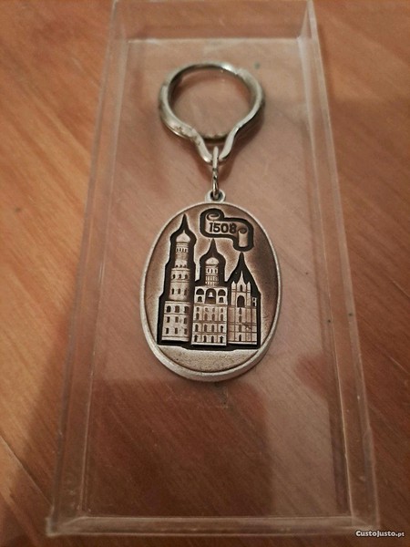 Porta chaves vintage representando imagem de antigo edifício da Rússia moscovita, datado de 1508: