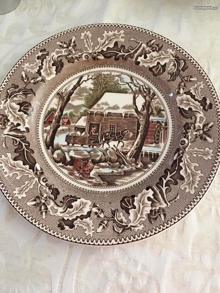 Vendo prato sem defeito, motivo Thanksgiving, , 27 cm de diâmetro, genuine Hand engraving.