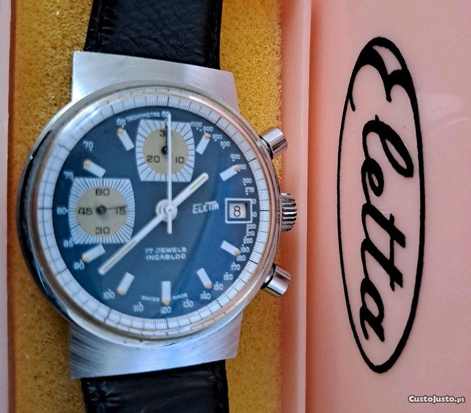 Preço: 350 €Relógio cronógrafo antigo corda ELETTA cal. Valjoux 7765 - Novo dentro caixa original !