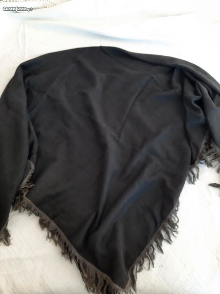 Preço: 20 €xaile preto muito antigo com franja cinza