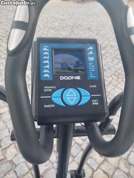 Elíptica pouco usada, ideal para treinos em casa. Equipamento silencioso, com diferentes níveis de resistência, visor digital para controlo de tempo, calorias, distância e ritmo cardíaco. Compacta e fácil de mover. Excelente para quem procura melhorar a sua forma física sem sair de casa.