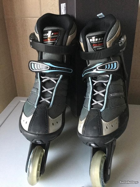 Dá-se a quem comprar os patins todos o material de proteção (capacete não incluído)