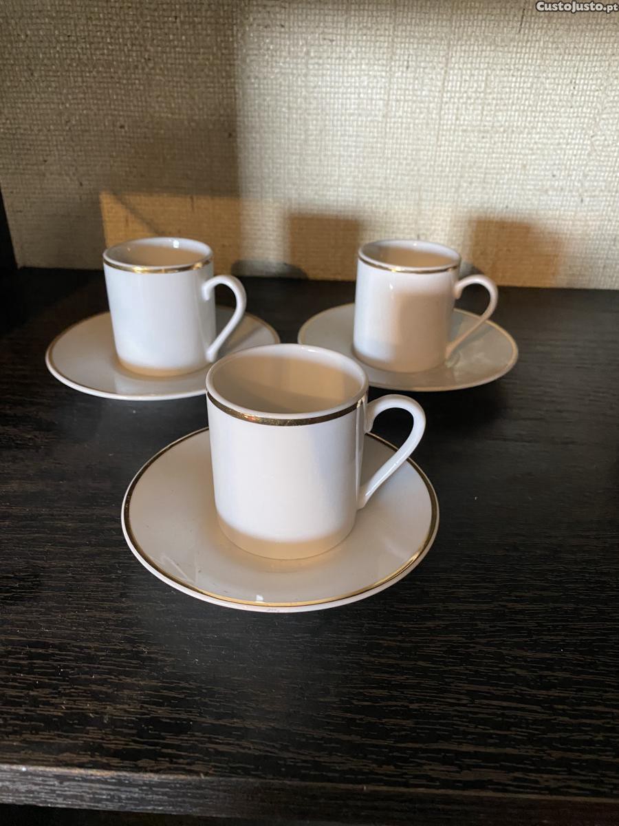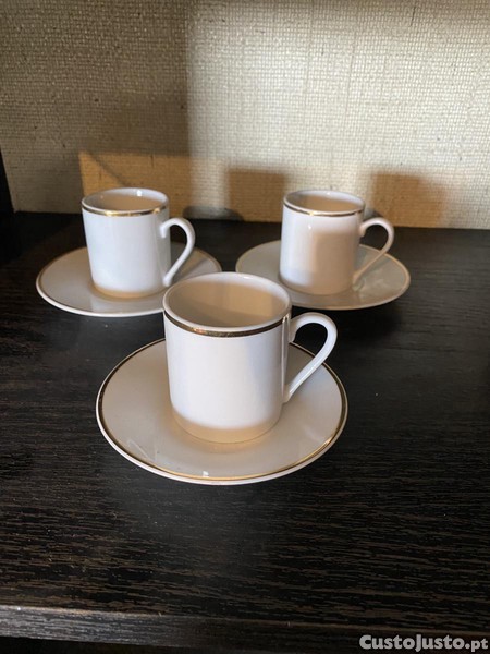 Preço: 3 €conjunto 3 chavena e pires branco com dourado