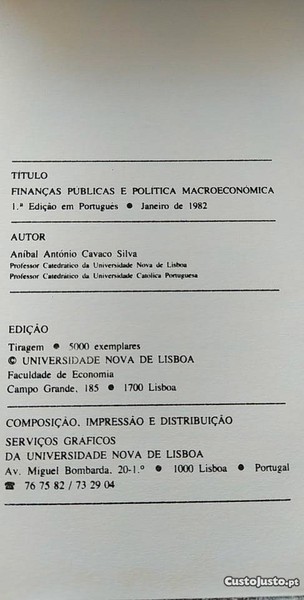 Preço: 5 €Finanças Públicas e Política Macroeconómica(1982)