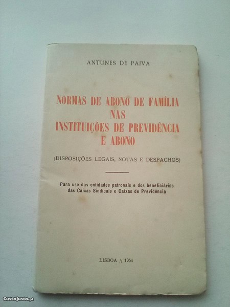 Preço: 13 €Normas Abono Família Instituições Previdência...