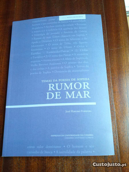 Livro completamente novo. Este livro, sem esquecer alguns dos temas centrais da poesia da Sophia de Mello Breyner Andresen, procura pôr em evidência o fascínio que a Hélade sobre ela exercia. Embora aborde uma gama de assuntos e de pontos de ligação com o mundo, cultura e figuras gregas, de modo algum se apresenta como exaustivo. Apenas pretende contribuir com algumas pistas para uma compreensão e neste domínio vem na sequência de outros estudos que têm surgido da estreita ligação da obra e sentir de Sophia com os valores da antiga Grécia. Rumor de mar colhe o título em um poema de Musa e pretende transmitir e sugerir a importância que o mar tinha para Sophia. José Ribeiro Ferreira Professor Catedrático da Faculdade de Letras da Universidade de Coimbra foi também Diretor do Instituto de Estudos Clássicos, Diretor da Humanitas e Presidente do Conselho Pedagógico. Ofereço portes de envio em correio normal.