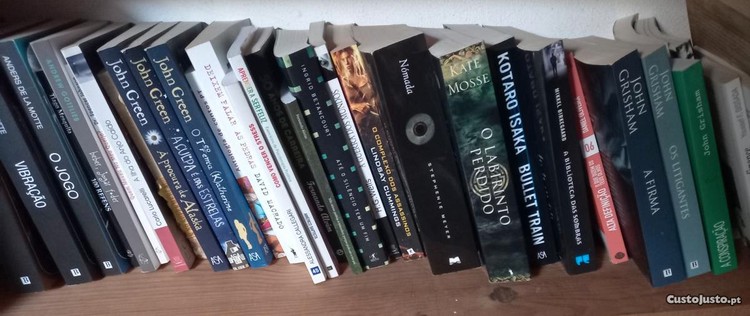 Vendo vários livros, desde ficção a temas do quotidiano: