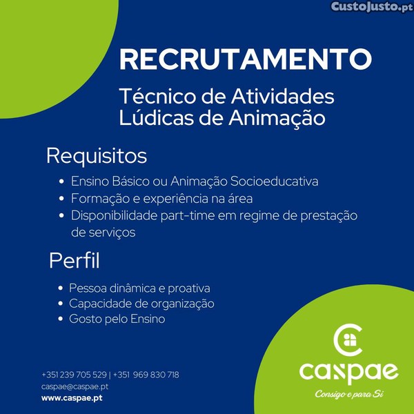 [ ] O CASPAE está a recrutar técnico de Atividades Lúdicas de Animação.