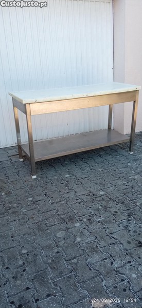Bancada toda de inox com placa por cima de polietileno, medidas 1.5m comprimento x 0.50m largura x 0.90m altura
