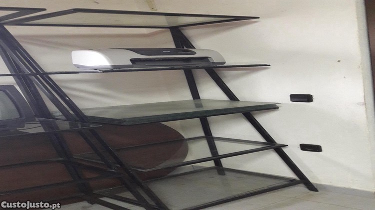 Conjunto de 3 módulos de Prateleiras em estado impecável. IMPRESSORA, MICRO-ONDAS E TELEVISOR NÃO incluídos e não SE ENCONTRAM À VENDA.