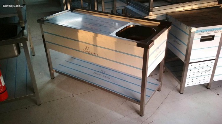 Preço: 350 €Bancada de inox 1500x600x900 com cuba 340x400