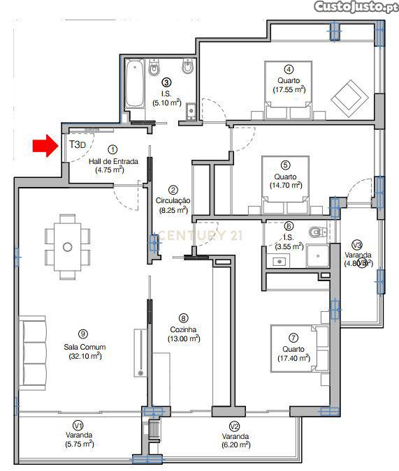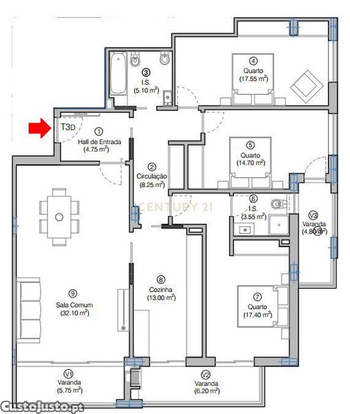 Preço: 380 000 €Apartamento T3 com varandas e Churrasqueira