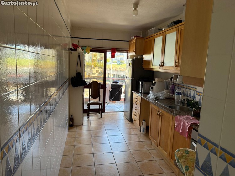 T3 com parqueamento sem mobília, apenas com cozinha equipada.