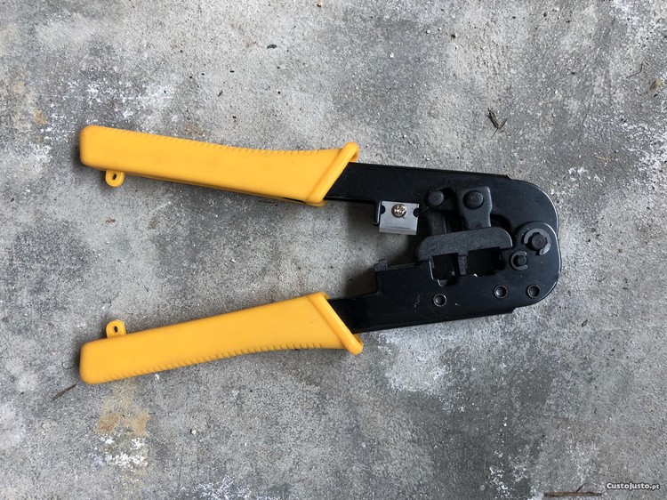 Alicate de cravar e descarnar cabos rj45 e rj11, como novo, bastante robusto. Possui lâmina para descarnar os cabos.