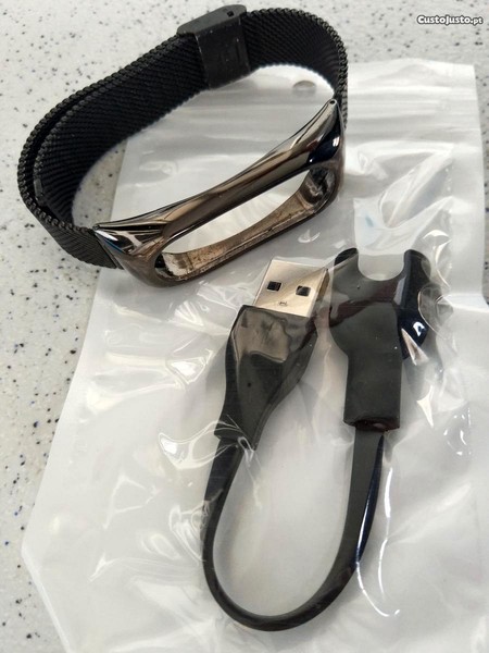 Preço: 10 €Pulseira metálica e cabo USB para MI Band2