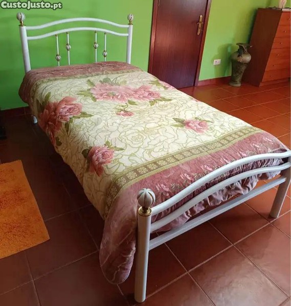 Cama de solteiro em bom estado, vai com colchão e colcha. Transporte a combinar