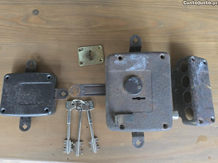 Fechadura a funcionar bem a precisar de uma pintura, está muito oxidada, tem 3 chaves. Só vai o que está na imagem.