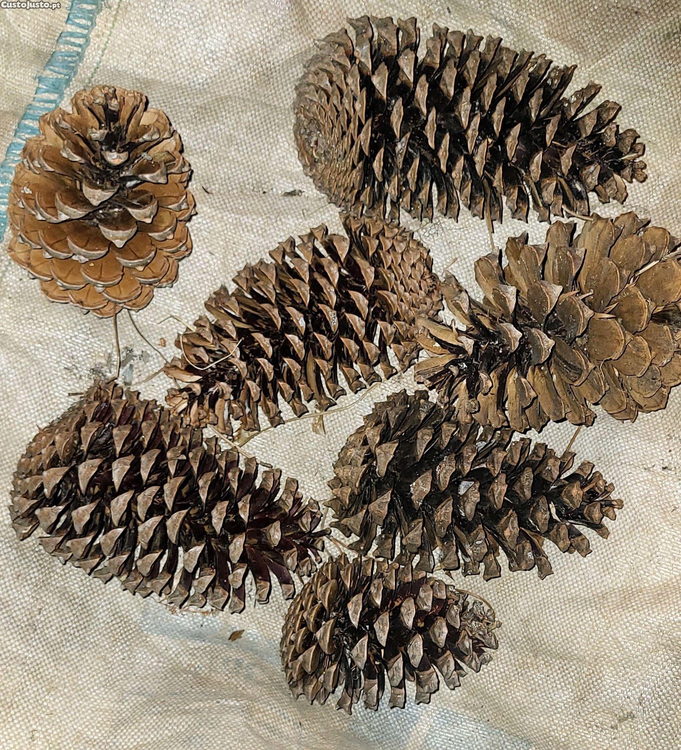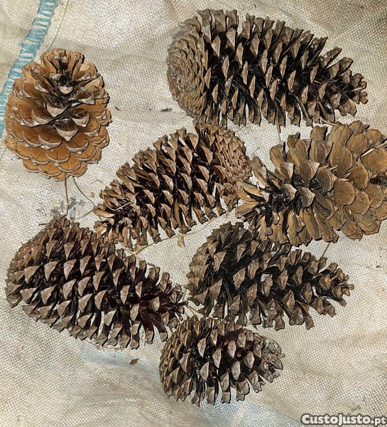 Cada saco leva entre 50 a 60 pinhas novas, nada de podres nem partidas.
