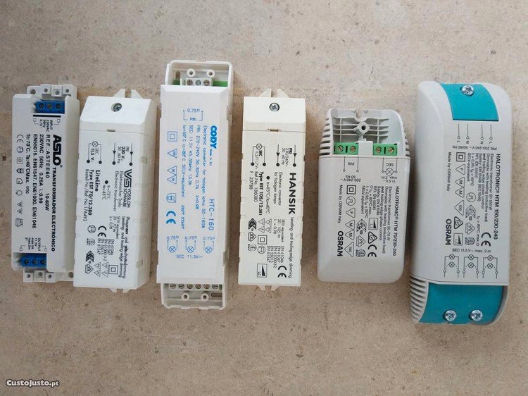 Transformadores para lâmpadas de halogénio de várias, modelos e características: