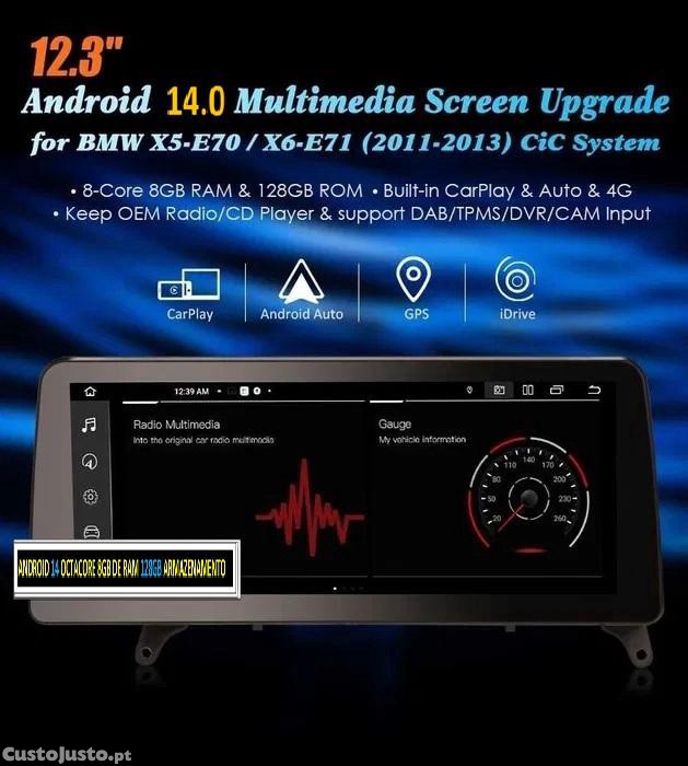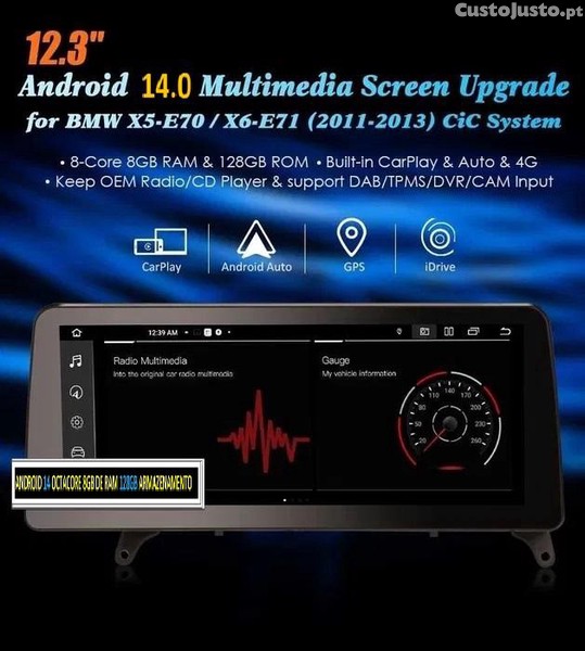 Preço: 350 €Auto-rádio 10.25" 12.3" android 14 BMW X5 E70 X6 E71 E72