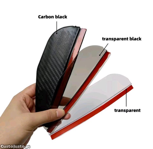 Vendo palas de protecção das capas de espelhos para todos os carros. E universal. Tem 3 tipos de cores: transparente, carbono e preto. Material novo e sem nenhum problema e nem nenhuma anomalia. Facil de aplicar. Tem uma fita. Pronto a usar.