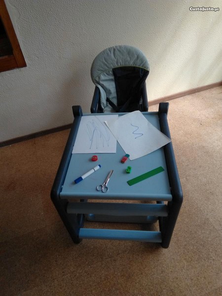 1 cadeira de alimentação convertível, usada, tecido lavável, com cinto de segurança, fácil montagem, quando desmontada ocupa pouco espaço--15EUR