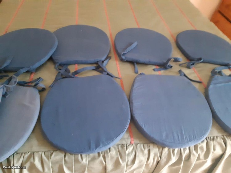Vendem-se 8 almofadas para cadeiras de rabo de bacalhau, (LEIA O TEXTO ATÉ AO FIM, O PREÇO ESTÁ NO FIM DESTE), com atilhos para atar na cadeira, tecido lavável, 8EUR cada