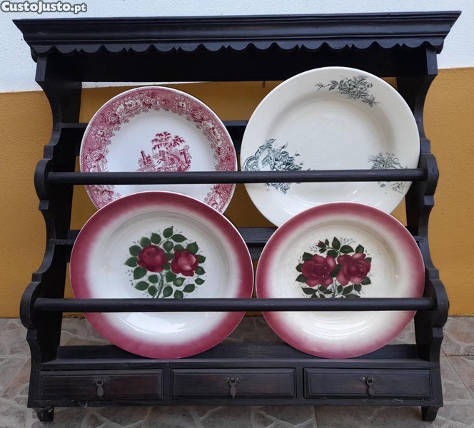 Preço: 190 €Antigo escaparate em madeira com 3 pratões de Sacavém.