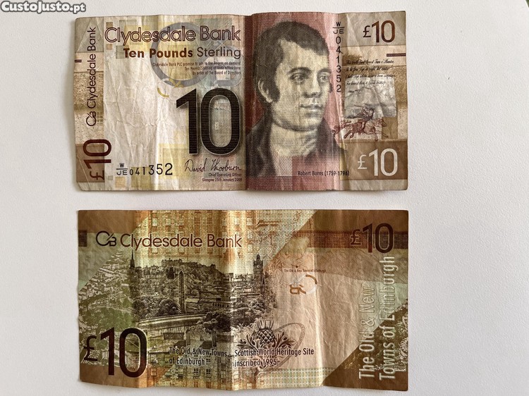 Vendo 1 ou 2 notas de 10 libras esterlinas do Clydesdale Bank de 2009. 45 as duas ou 25 para uma nota.