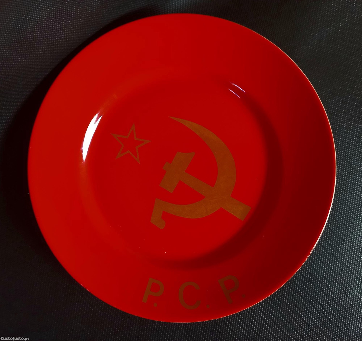 Prato Sacavém de colecção alusivo ao Partido Comunista Português. Apresenta pequena falhinha atrás cf foto e carimbo desgastado, de resto, em muito bom estado.