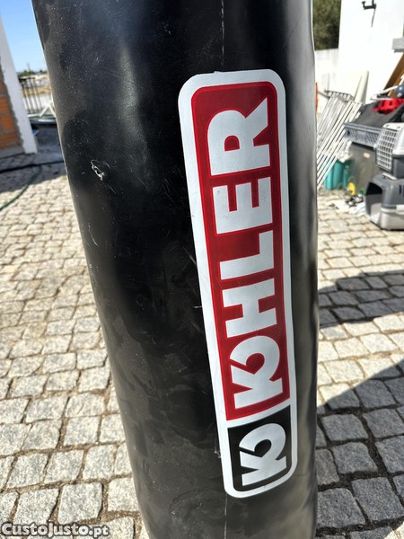 Saco de boxe da marca Kohler, ideal para treinos de boxe, kickboxing, muay-thai e outras modalidades de combate. Apresenta resistência e durabilidade, com fixação robusta para utilização intensiva. Produto em bom estado, com sinais normais de uso, pronto a ser pendurado e utilizado de imediato.