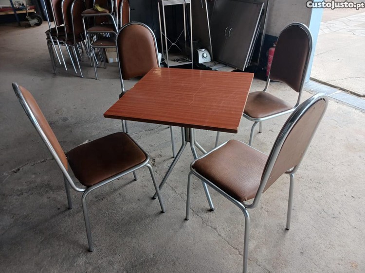 Descrição: Conjunto de 4 mesas e 20 cadeiras para restaurante. Mesas com tampo em madeira, com 700x700mm (LxP)
