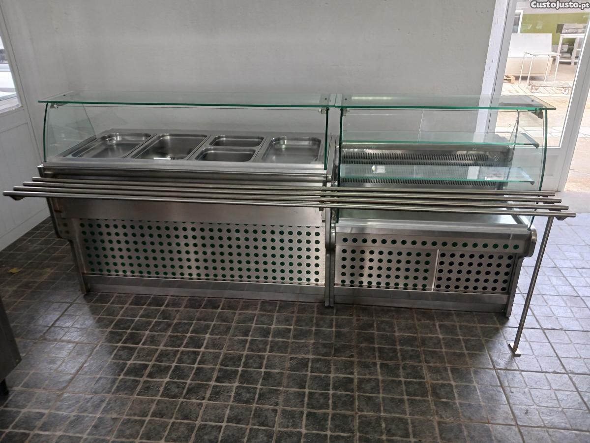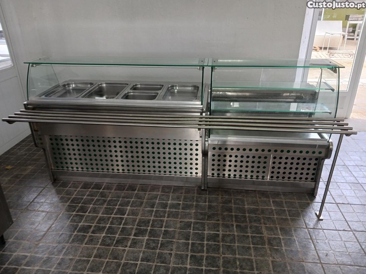 Descrição: Self service totalmente em inox composto por vitrine refrigerada e banho maria com estufa. Em excelente condição e funcionamento.