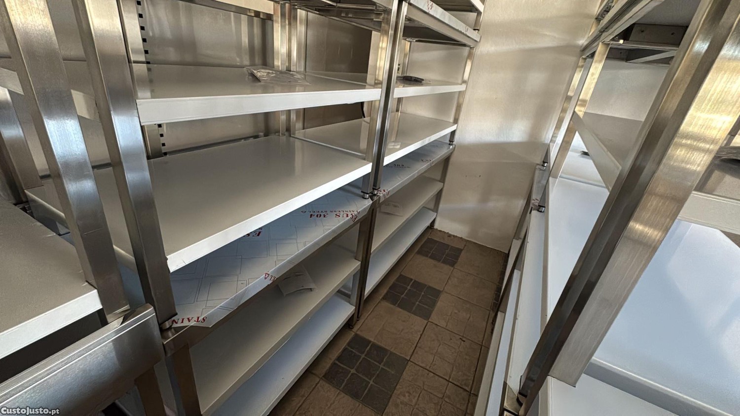 Preço: 390 €ACM1646 - Bancada Central Inox de 1,5m com 2 Prateleiras - NOVA