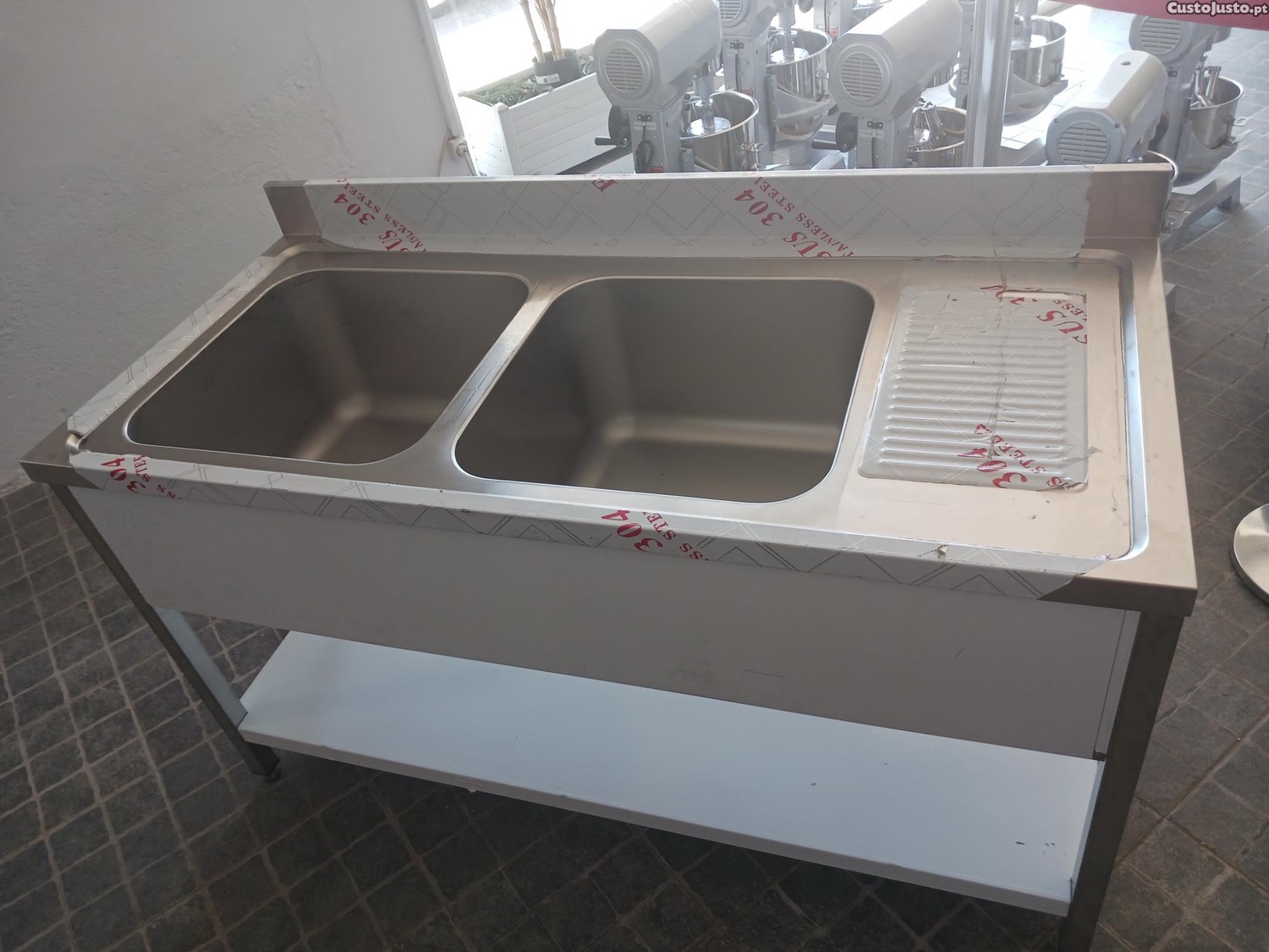 Preço: 890 €ACM1653 - Bancada de Lavagem Inox 1,5m de 2 Pios 50x50cm - NOVA