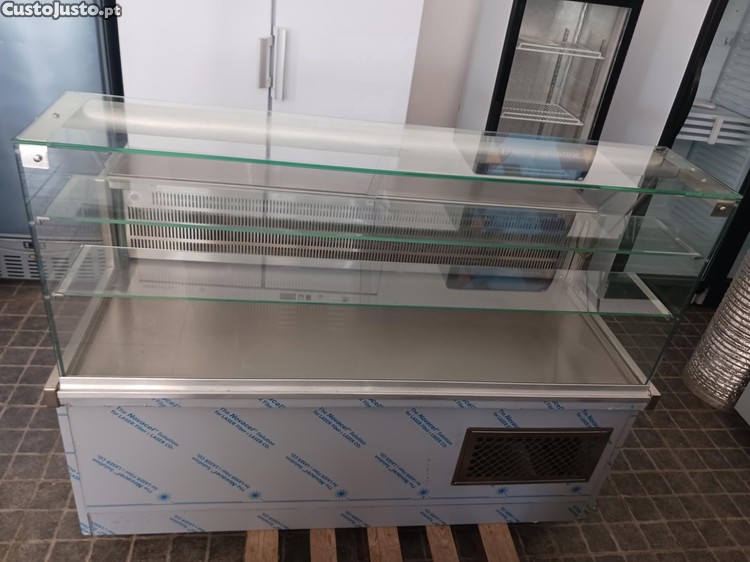 Descrição: Vitrine expositora refrigerada em inox, com 2 prateleiras, reserva refrigerada e com iluminação. Com pouco uso, está quase como nova.