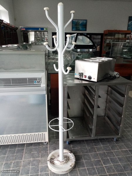 Descrição: Cabide / Bengaleiro c/ base em mármore, com 8 cabides + suporte para guarda chuva. Usado