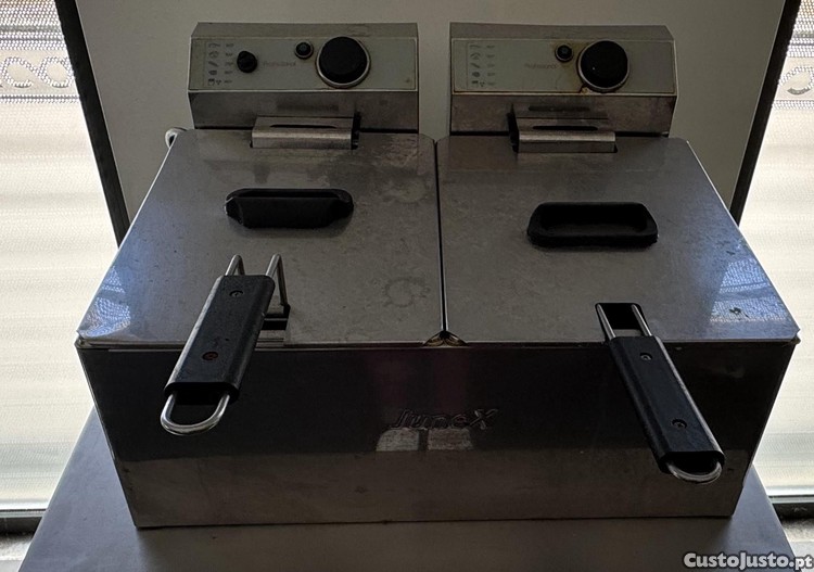 Fritadeira a óleo dupla profissional, ideal para restaurantes, eventos ou uso em cozinha comercial. Inclui dois cestos individuais, permitindo fritar diferentes alimentos em simultâneo, com controlo independente de temperatura para cada cuba. Estrutura e tampas em inox, fácil de limpar e robusta. O equipamento encontra-se funcional e será vendido nas condições atuais, conforme apresentado nas imagens. Recolha a cargo do comprador na morada indicada.