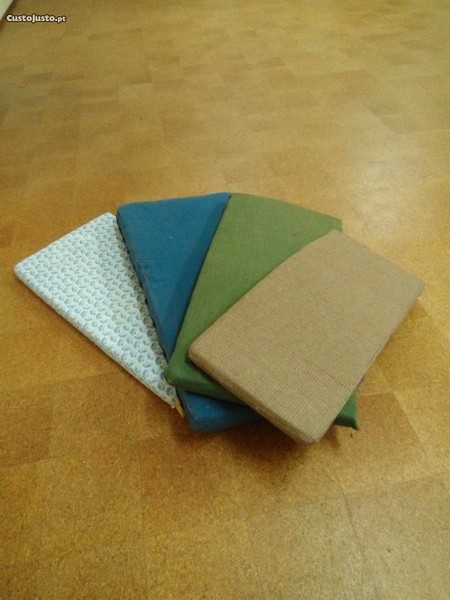 Vendemos conjunto de 6 colchões, ( LEIA O TEXTO ATÉ AO FIM , O PREÇO ESTÁ NO FIM DE CADA FRASE), pouco uso, cores diferentes, diversas medidas 2 colchóes de esponja, comprimento 1,16cm, largura 56cm, espessura 6cm--4EUR cada 1 colchão de molas azul e beje com bolas beje, comprimento 1,19cm, largura 58cm, espessura 8cm--4EUR cada 1 colchão de esponja com tecido beje, comprimento 1,20cm, largura 57cm, espessura 7cm--4EUR cada 1 colchão de esponja com tecido aos quadrados beje e preto, comprimento 1m, largura 46cm, espessura 6cm--4EUR cada 1 colchão de esponja com tecido azul escuro, comprimento 1,30cm, largura 64cm, espessura 19cm--4EUR cada Vendemos em conjunto ou separadamente.