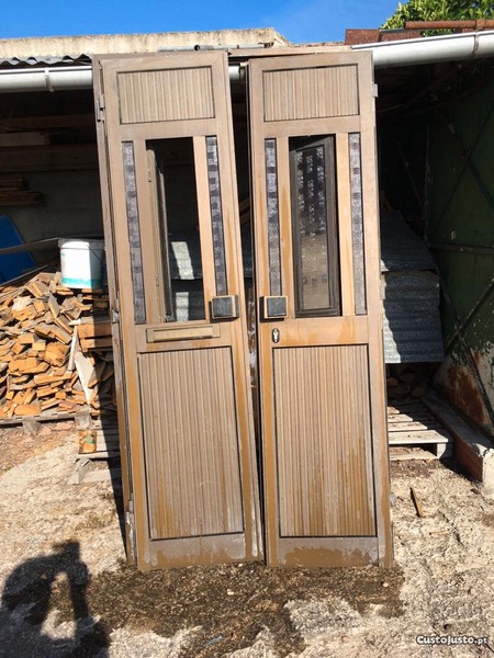 porta de aluminio castanha dupla usada com 1.07x2.13mt