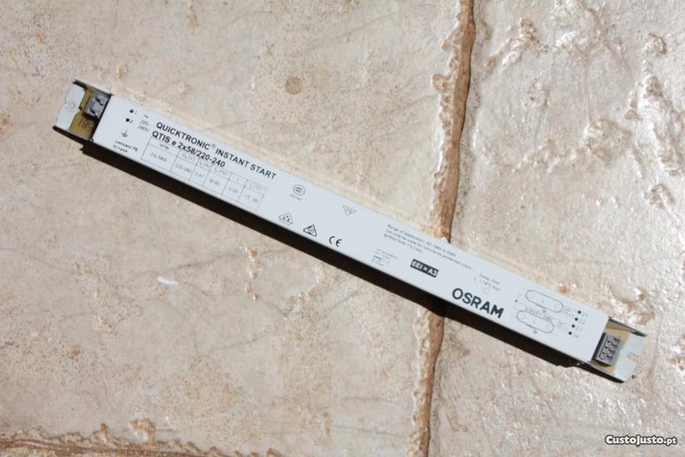 Balastro electrónico Osram para lâmpada fluorescente2x58W economiza pelo menos 40% de energia eléctrica. Tenho vários em stock e de outras potencias também. Posso enviar por transportadora para todo o Pais.