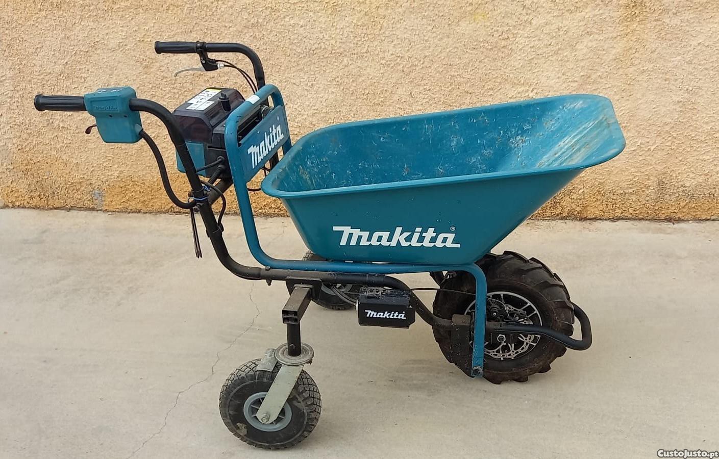 Carrinho de mão Makita usado, com capacidade de carga robusta e design durável. Ideal para tarefas de jardinagem e transporte de materiais. Equipado com rodas grandes e estáveis para facilitar o manuseio em terrenos irregulares.
