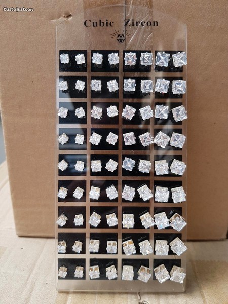 Bijutaria Brincos cristal quadrados 6-7-8-9mm em expositor de 36 pares, preço por cada expositor 10 Euros, preço por par 27 cêntimos.