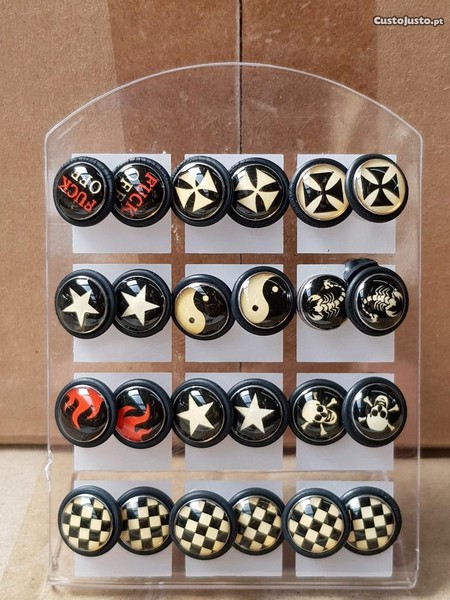 Bijutaria Brincos piercing sortidos 12mm em expositor de 12 pares, preço por cada expositor 6 Euros, preço por par 50 cêntimos.