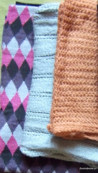 - 1 cachecol marca Only, NOVO, por estrear, muito grosso e quente, em tons lilás, com losangos cinzentos, lilases e rosa, com largura de 27 cm e comprimento de 2,10 m.