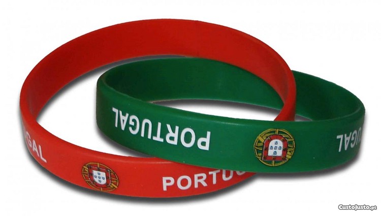 Pulseira dupla em silicone com as cores e decoração da bandeira de Portugal.
